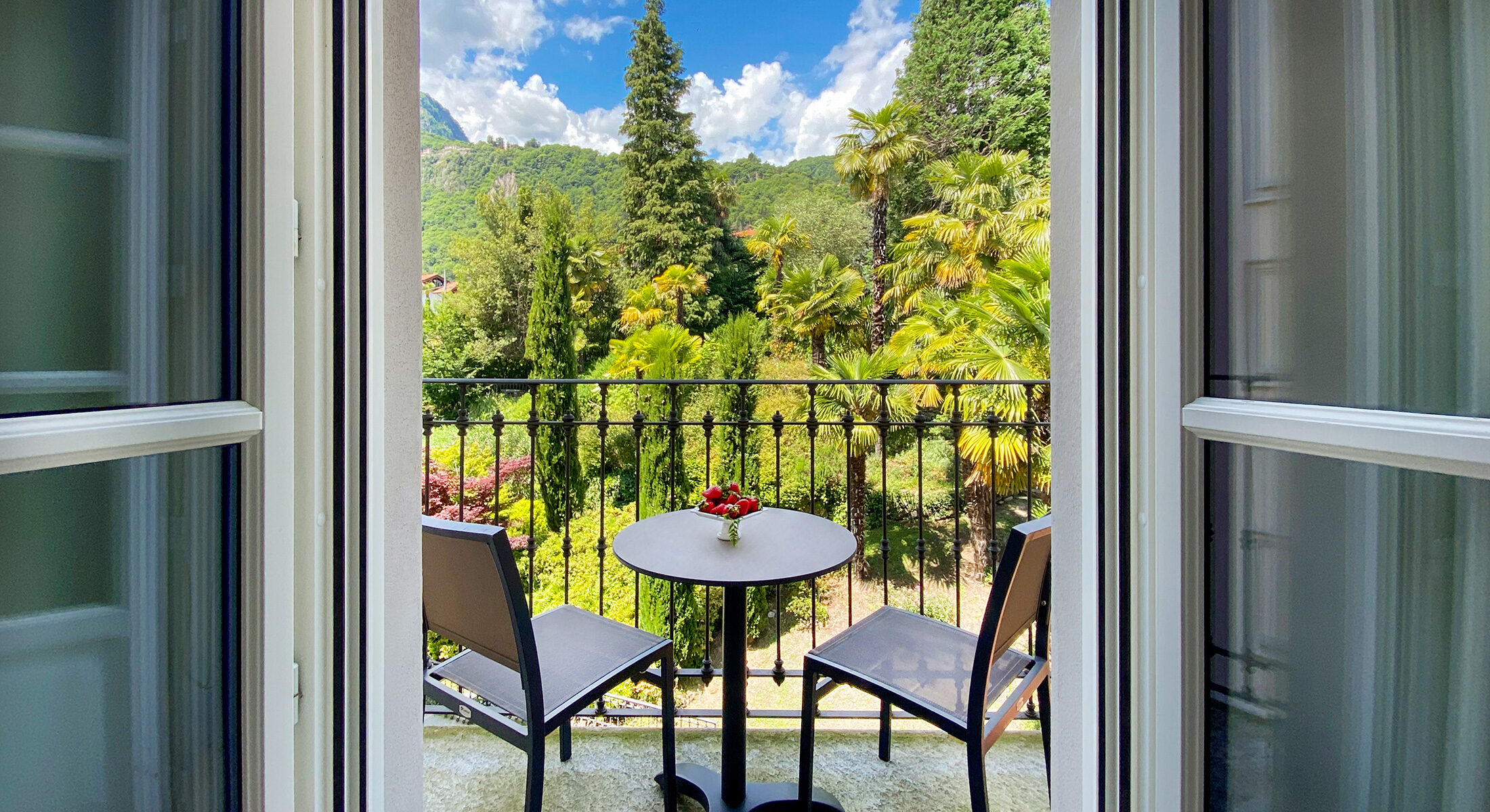 The rooms with garden view enjoy the view of the park with the blooms of the various seasons: camellias and azelas in spring, gardenias and agapantus in the summer months and oratensias and dahlias in autumn.
